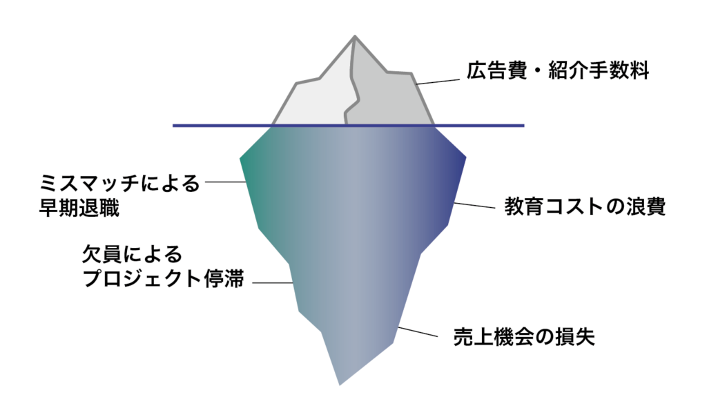 このような市場の変化の中で、採用の失敗は単なる人事部門の課題にとどまらず、経営利益を損なう重大なリスクであり、目に見えない大きな機会損失を招いています。
